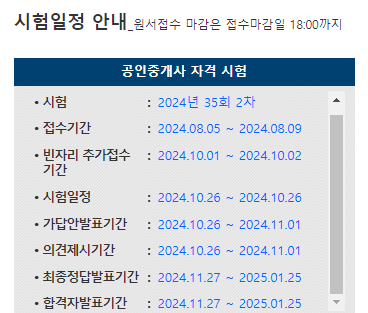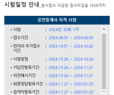 제35회[2024년 시행] 공인중개사 시험의 일정에 대하여 안내드립니다.